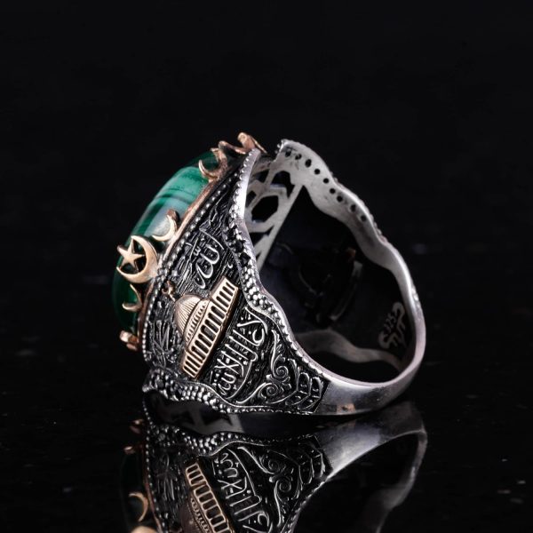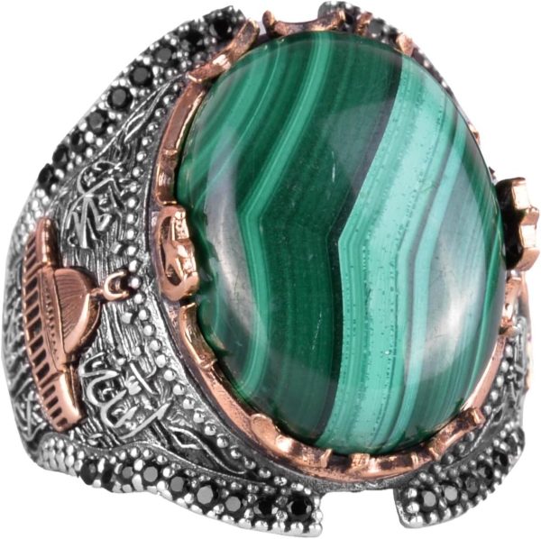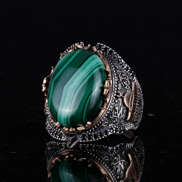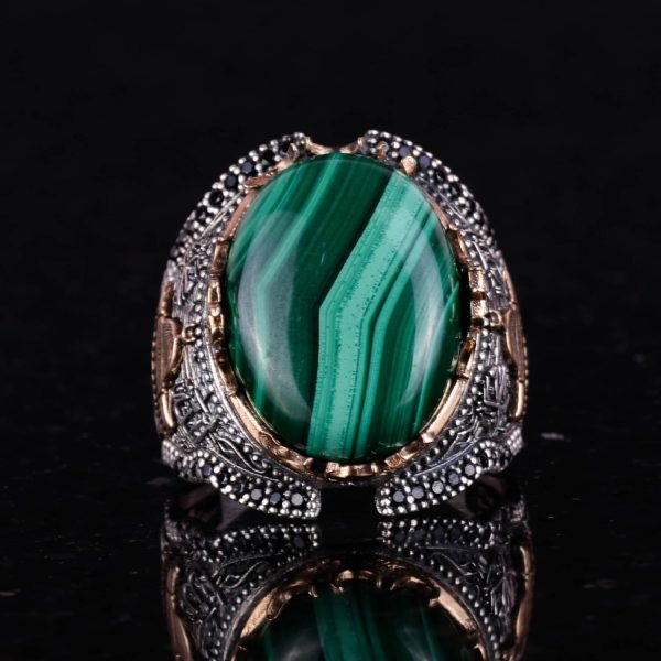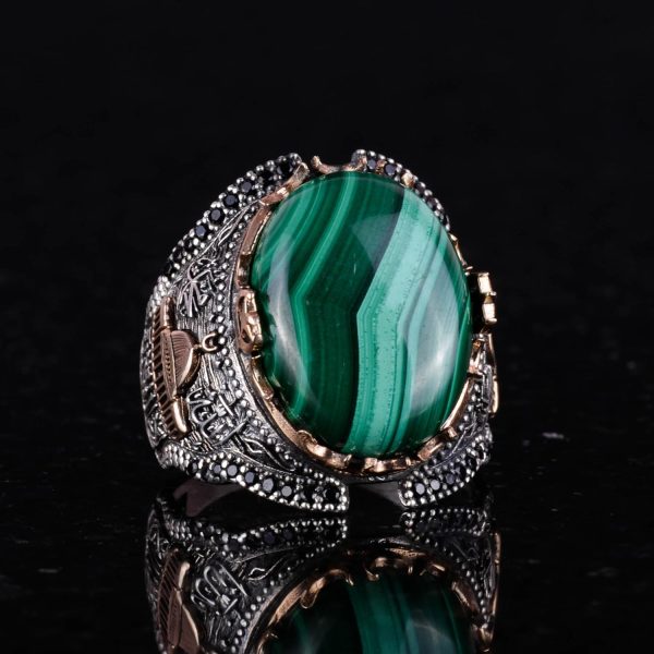 Doğal Malakit Taşlı Yüzük, 925K Saf Gümüş Erkek Yüzüğü