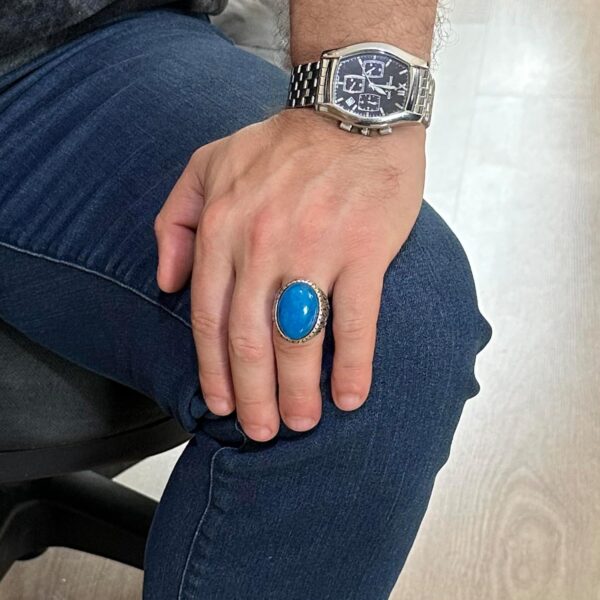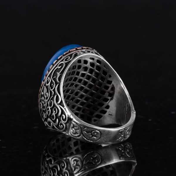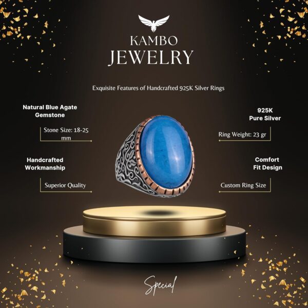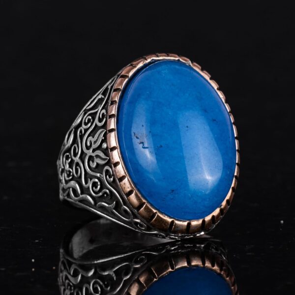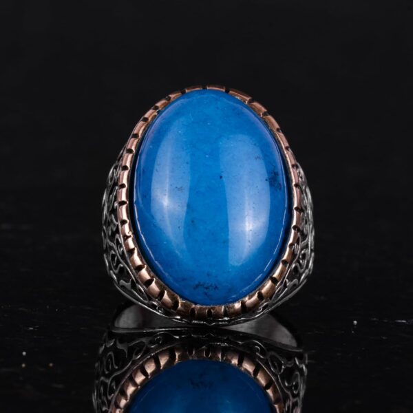 Doğal Mavi Akik Taşı Yüzük, %925 Katı Gümüş Yüzük Erkekler İçin, Büyük Yüzük, Tasarım Gümüş Erkek Yüzüğü