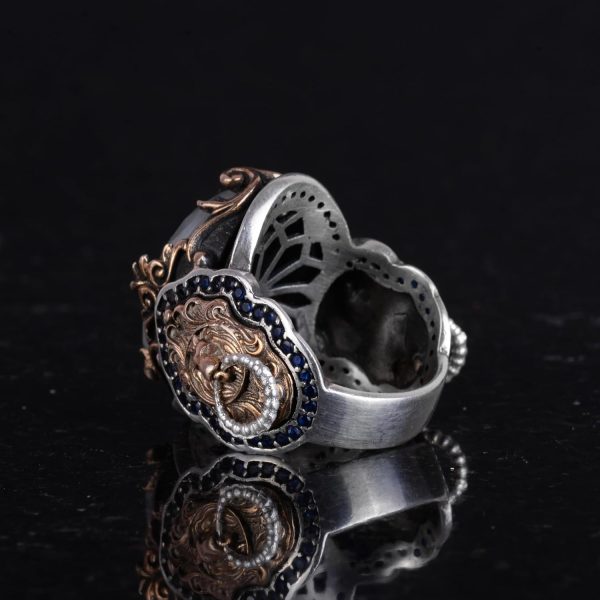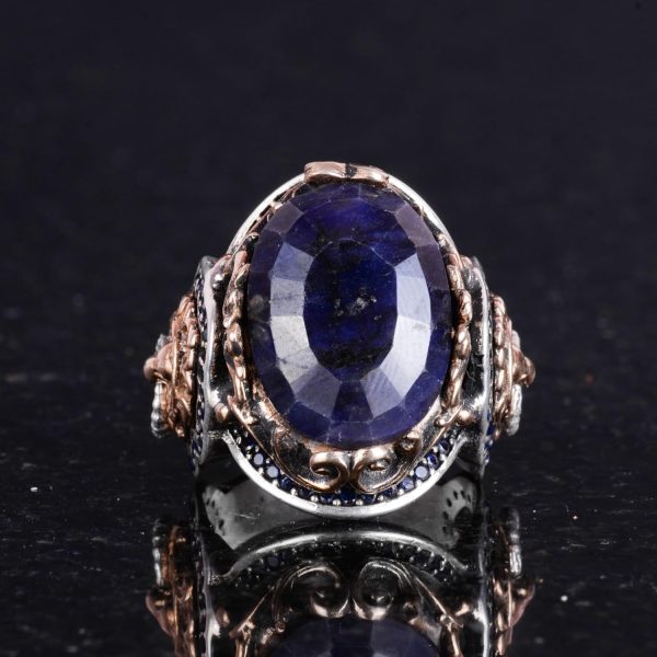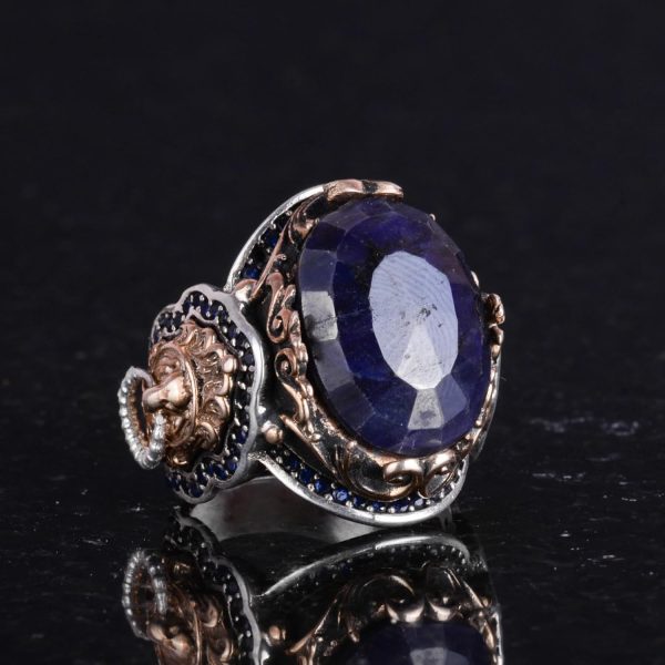 Doğal Mavi Safir Taşlı Yüzük, Aslan Gümüş Yüzük – Şık 925K Katı Sterlin Gümüş Erkek Yüzüğü – Sadakat ve Bilgelik Tasarımı