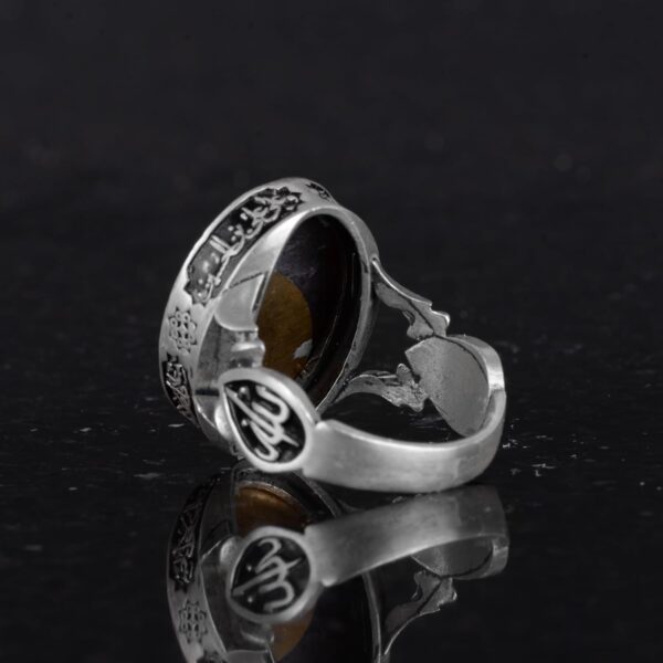 Bu yüzük, ruhsal ve kültürel bir anlam katmak için karmaşık Arap yazılarıyla bezeli olup, onu eşsiz ve anlamlı bir parça haline getirir.