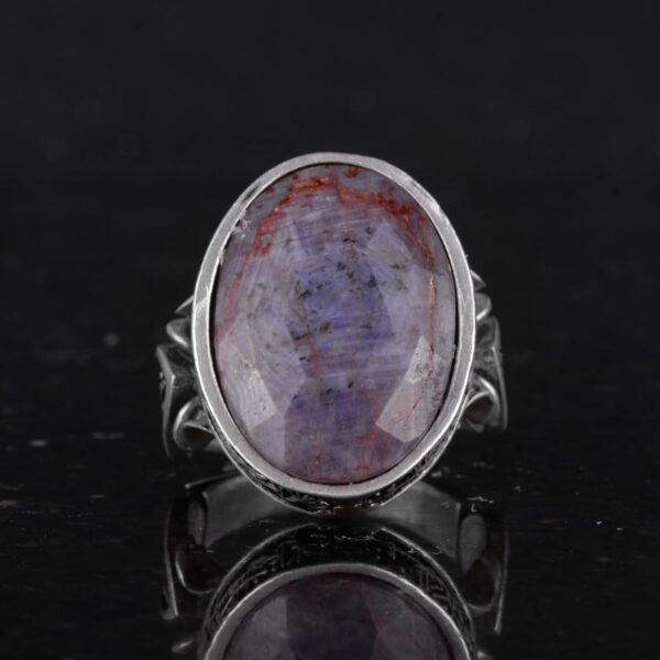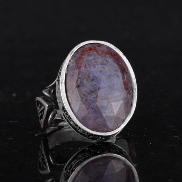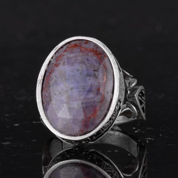 Doğal Mor Safir Taşlı Erkek Yüzük, El Yapımı 925 Ayar Gümüş Takı – Bilgelik, Koruma ve Ruhsallığın Sembolü