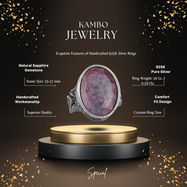 KAMBO Erkek Yüzüğü Doğal Mor Safir Taşı ile