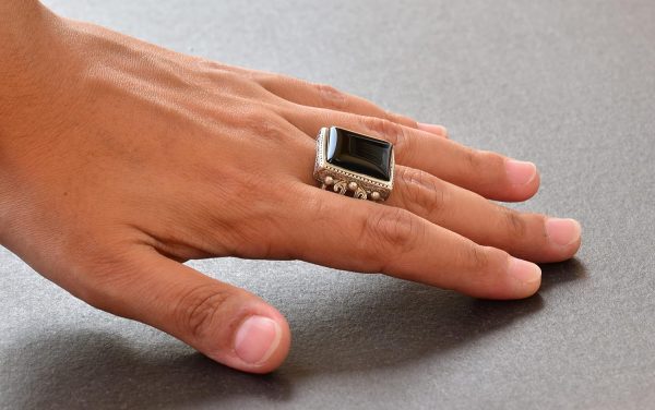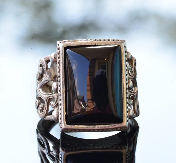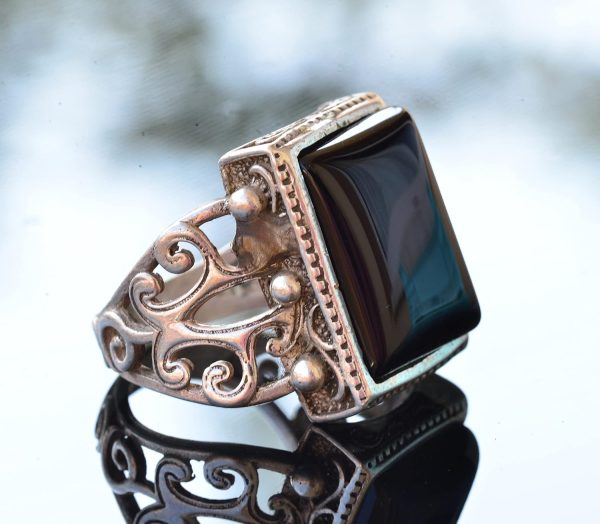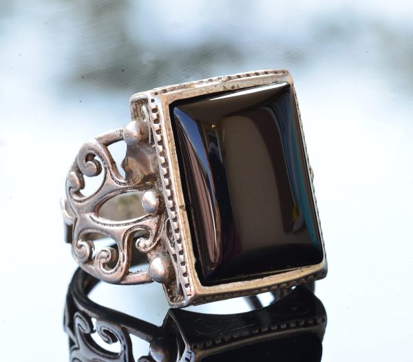Doğal Obsidan Taş Yüzük, El Yapımı Yüzük, 925 Ayar Gümüş Yüzük, siyah