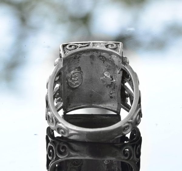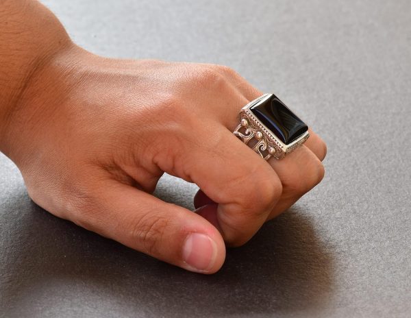 925 Ayar Gümüş erkek yüzüğü, etnik tasarım, benzersiz el yapımı gümüş yüzük. Taş Boyutu: 18-13 mm