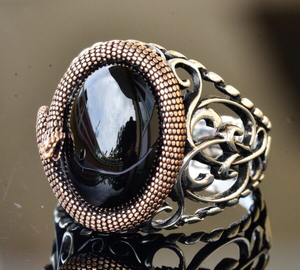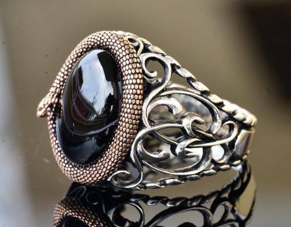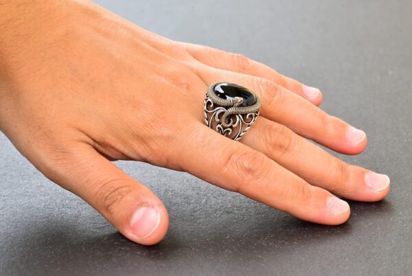 Antik mistisizmin dünyasına adım atın; FALCON JEWELRY’nin Yılan 925K Gümüş Erkek Taş Yüzüğü ile. Bu koleksiyon, farklı kültürlerde güç ve bilgelik için saygı duyulan yılanların zamansız sembollerini, doğal taşların cazibesiyle birleştiriyor. Her yılan figürü, çevrelediği taşı tamamlayacak şekilde özenle tasarlanmıştır ve bu, sadece bir stil ifadesi değil, aynı zamanda içsel güç ve korumanın bir sembolü olan bir yüzük yaratır. Her yüzük, efsanevi yılan mitolojisine benzersiz bir bağ sunarak, mükemmel bir şekilde el yapımı sanatsal bir kutlamadır.