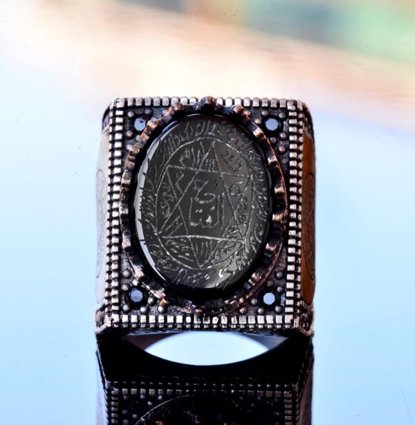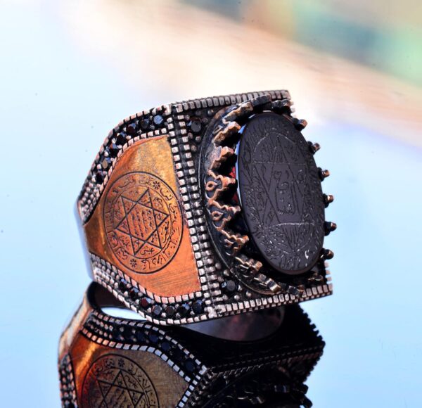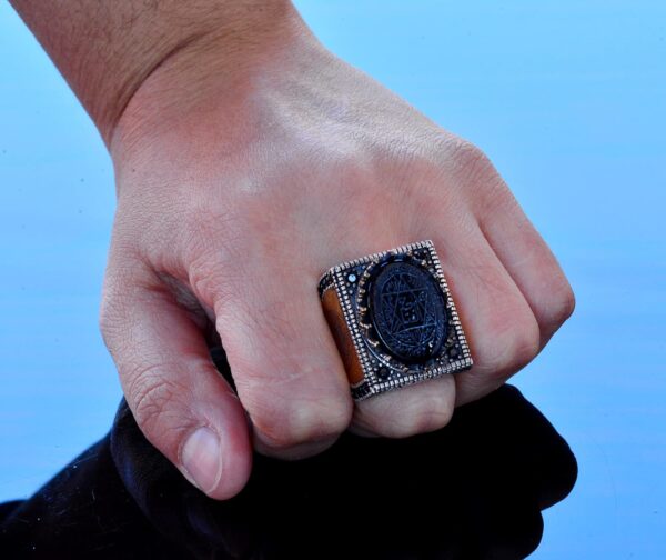 Bu yüzük, kültürel zarafet ve sofistikasyon ekleyen karmaşık Arap sembolleri ile süslenmiştir. Detaylı işçilik, Arap sanatının ve kültürünün zenginliğini takdir edenler için mükemmel bir parça haline getirir.