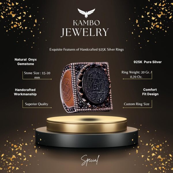 KAMBO El Yapımı Arap Yüzüğü Doğal Oniks Taşı ile, 925 ayar gümüşün zarafetini doğal oniks taşının güçlü güzelliği ile birleştiren bir başyapıttır. Her yüzük, deneyimli zanaatkarlar tarafından titizlikle hazırlanarak, her parçanın benzersiz ve en yüksek kalitede olmasını sağlamaktadır.