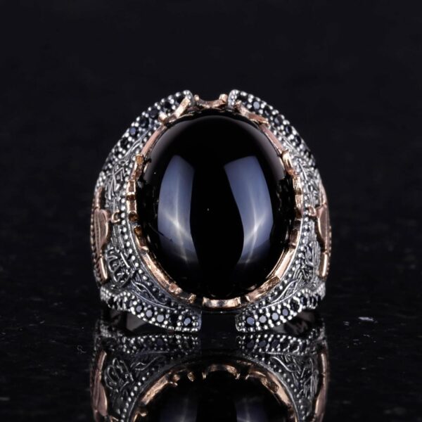 Doğal Oniks Taşlı Yüzük, 925 Ayar Katı Gümüş Erkek Yüzük