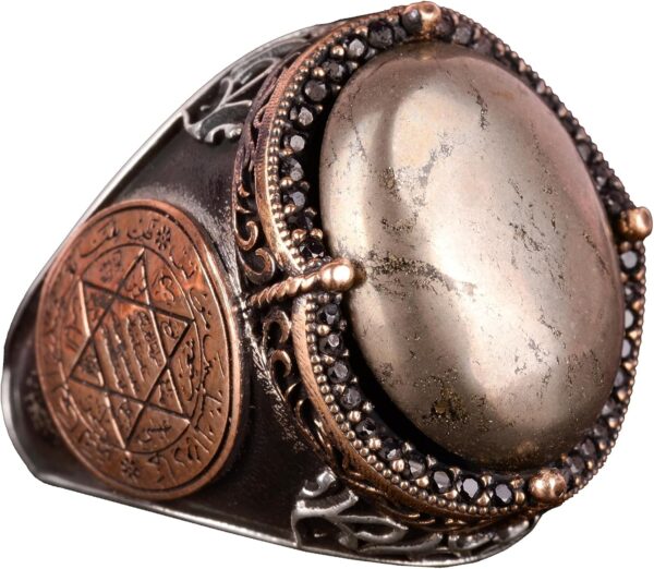 Doğal Pirit Taşı Yüzük, Süleyman’ın Gümüş Mührü Yüzüğü – Eşsiz 925K Katı Gümüş Erkek Yüzüğü