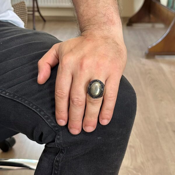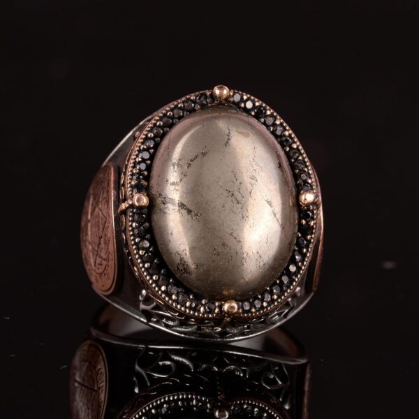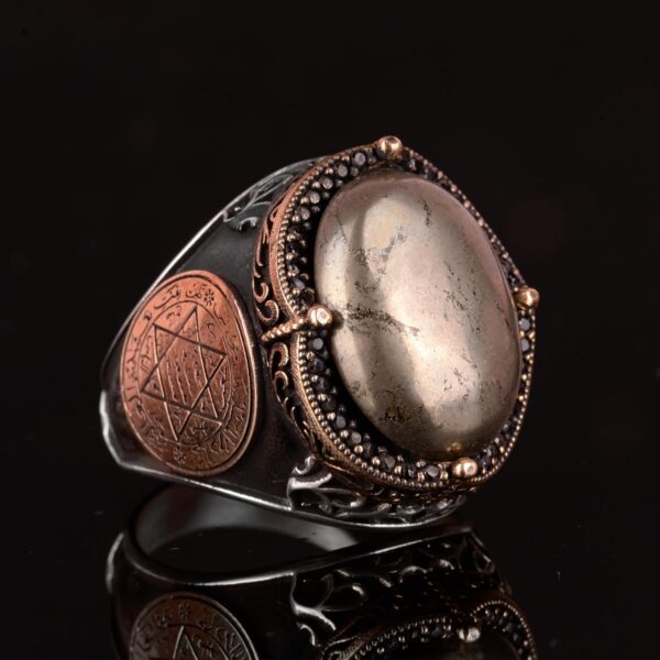 Doğal Pirit Taşlı Yüzük, Süleyman Mühürü Yüzüğü – 925 Ayar Katı Gümüş Erkek Yüzüğü