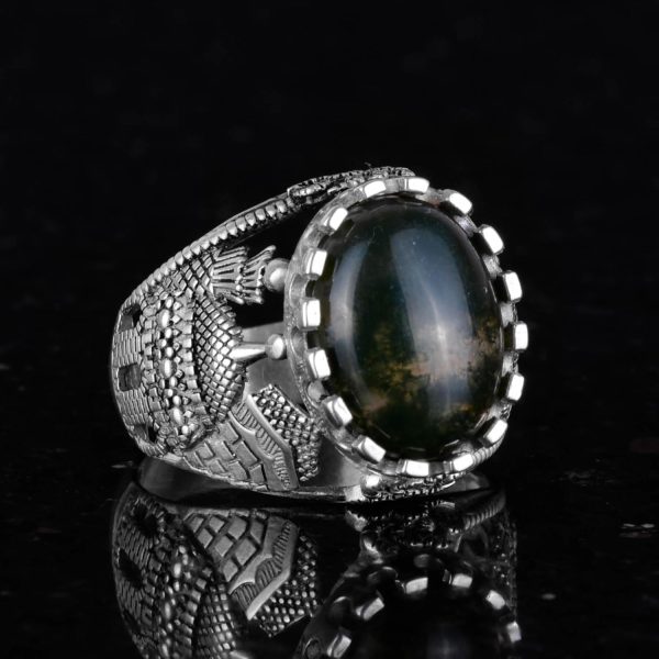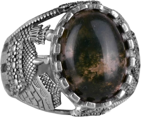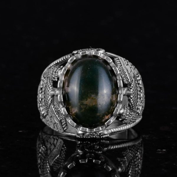 Doğal Saman Agat Taş Yüzük, 925 Ayar Saf Gümüş Erkek Yüzük, El Yapımı Şıklık