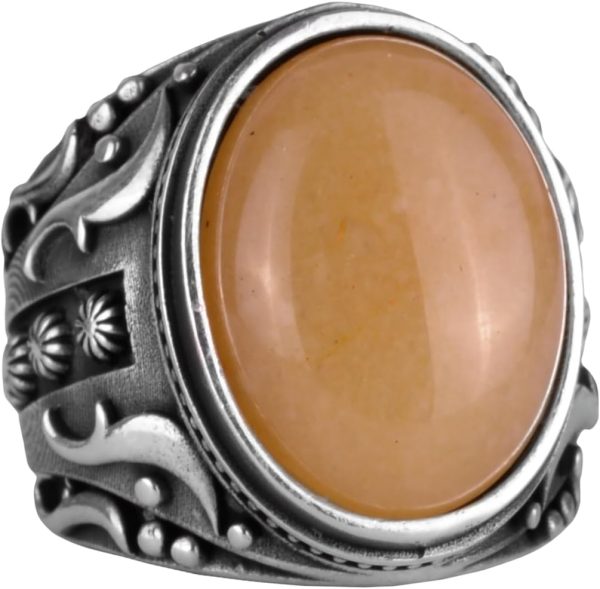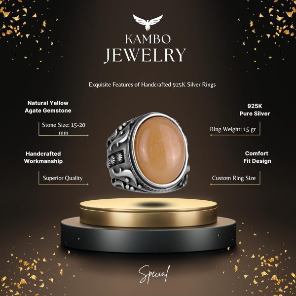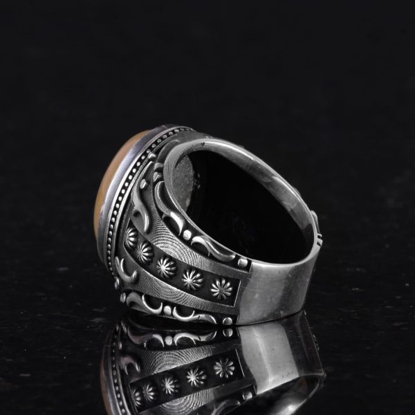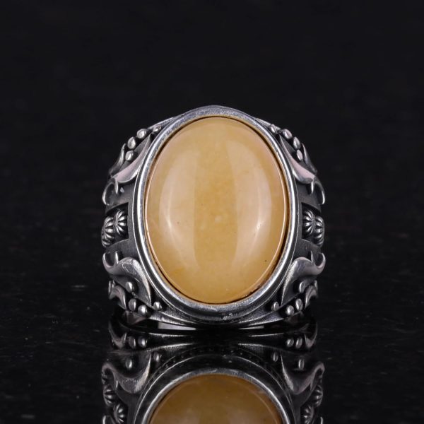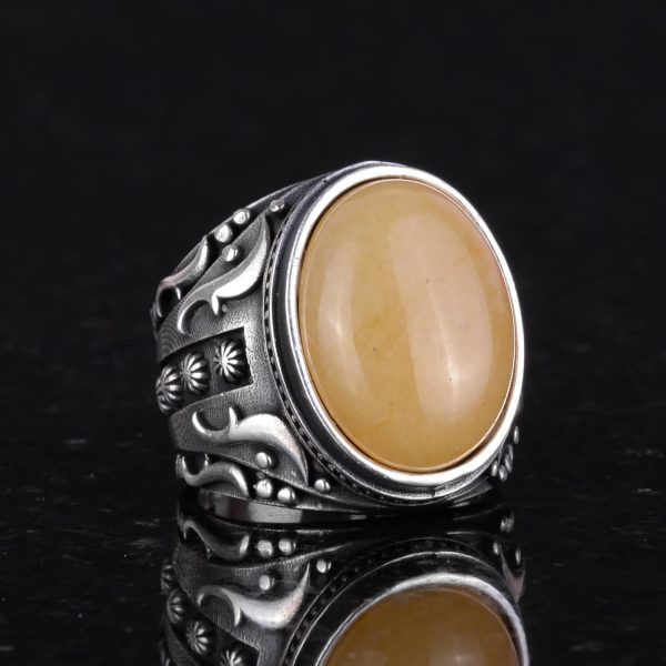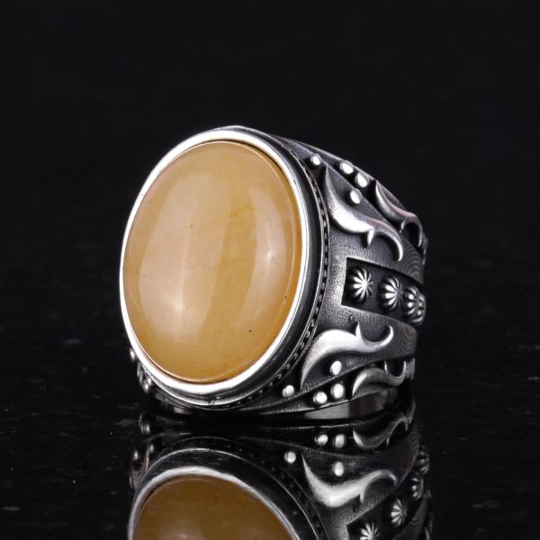 Doğal Sarı Akik Taş Yüzük, 925 Ayar Sterlin Gümüş Yüzük Erkekler İçin, Tasarım Gümüş Erkek Yüzüğü