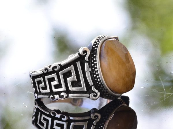 Doğal Sarı Safir Yüzük, 925 Ayar Gümüş Erkek Yüzüğü, Minimalist Tasarım