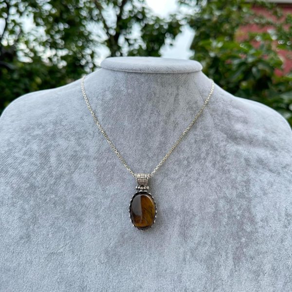 Doğal Taş Kolye – 925 Ayar Gümüş Kolye (Kaplan Gözü)