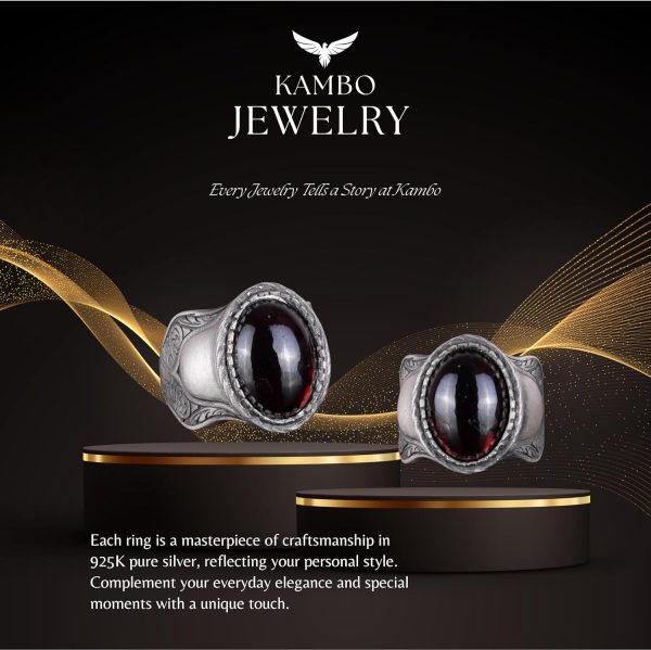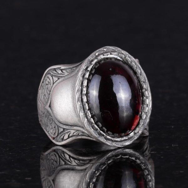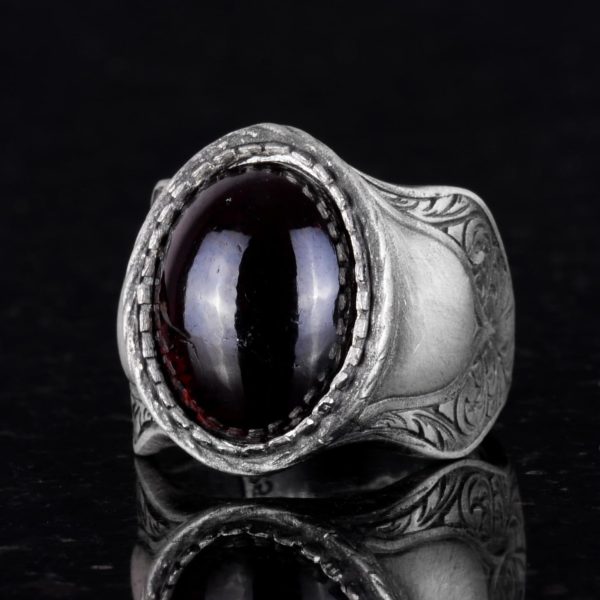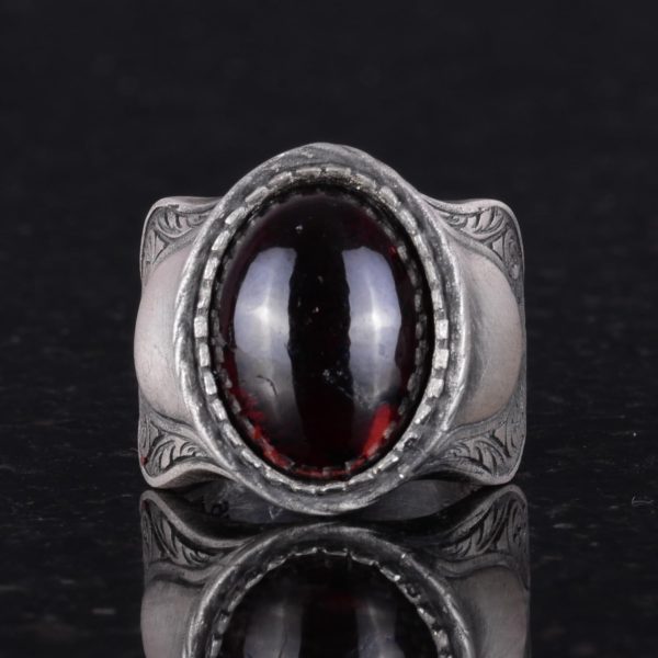 Doğal Taş Yüzük, 925 Ayar Gümüş Yüzük, Cabochon Garnet