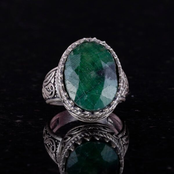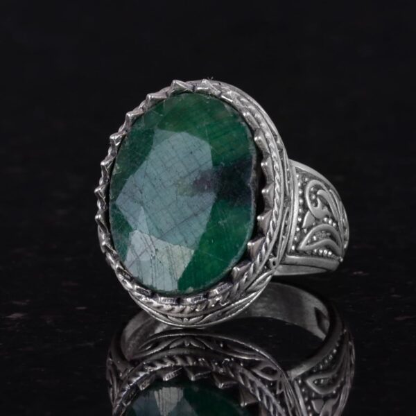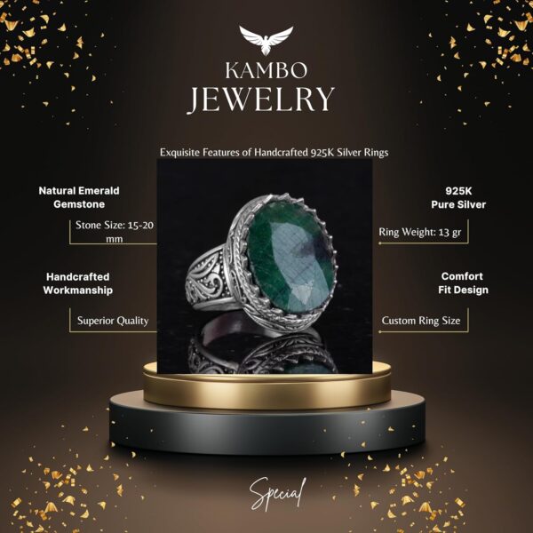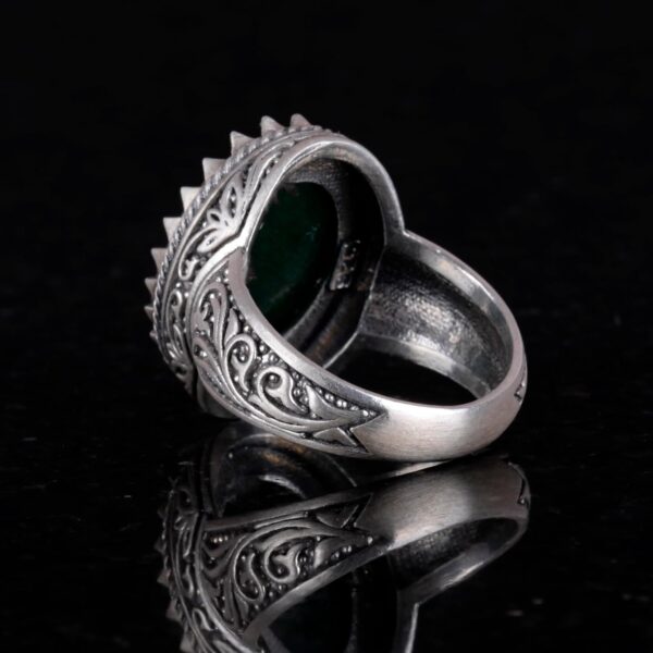 Doğal Taş Yüzük – 925 Ayar Gümüş Yüzük, Erkekler İçin (Zümrüt Taşı)