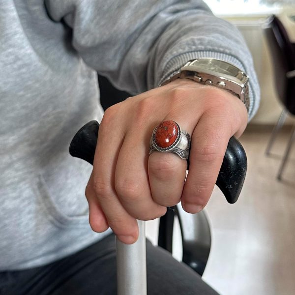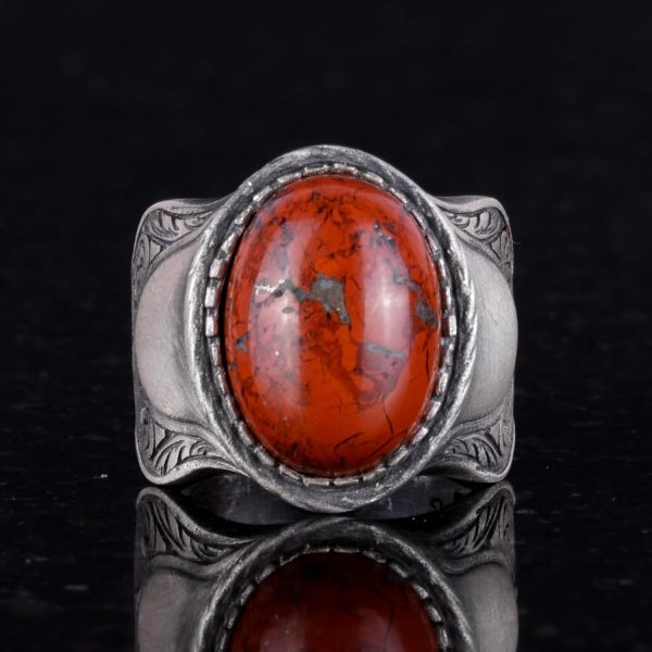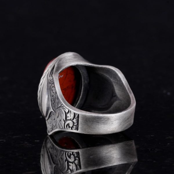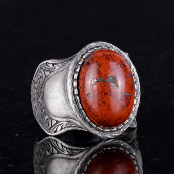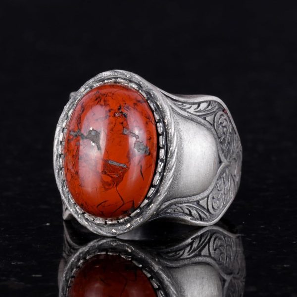 Doğal Taş Yüzük, 925 Ayar Gümüş Yüzük, (Kan Taşı)