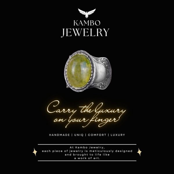KAMBO Özel Koleksiyonu, çeşitli doğal taşlarla zenginleştirilmiş 925K Sert Gümüş Erkek Yüzüklerimizin eşsiz zarafetini keşfetmeye davet ediyor. Koleksiyonumuzdaki her bir taş, kendine has güzelliği ve getirdiği benzersiz enerji ile seçilmiştir. El yapımı yüzüklerimiz, olağanüstü zanaatkarlığın bir göstergesi olup, lüks ve kişisel ifadenin özünü yansıtır. KAMBO, yüzüğünüzü tam boyutunuza ve tercihlerinize göre özelleştirme seçeneği sunarak, ince mücevher dünyasına samimi bir yolculuk sunar. Doğanın ve sanatın uyumunu, her biri kalite, tatmin ve zamansız zarafet vaadi taşıyan olağanüstü taş yüzüklerimizle deneyimleyin. Yüzük Ağırlığı: 11gr Taş Boyutu: 18-13mm