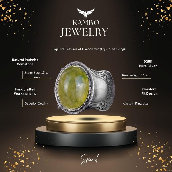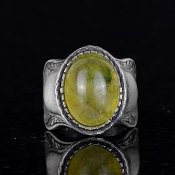 Doğal Taş Yüzük, 925 Ayar Gümüş Yüzük, Prehnit