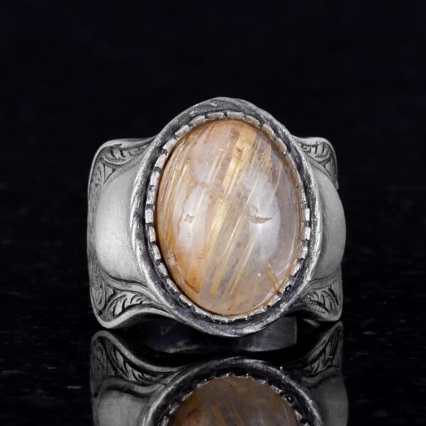Doğal Taş Yüzük, 925 Ayar Gümüş Yüzük, Rutilatlı Kuvars Yüzük