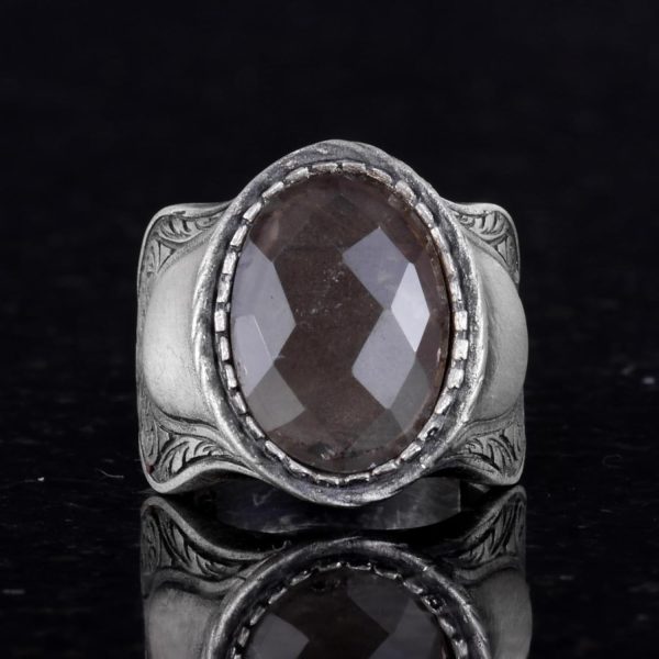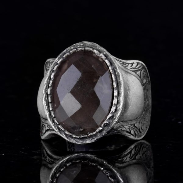Doğal Taş Yüzük (Dumanlı Kuvars), 925 Ayar Gümüş Yüzük
