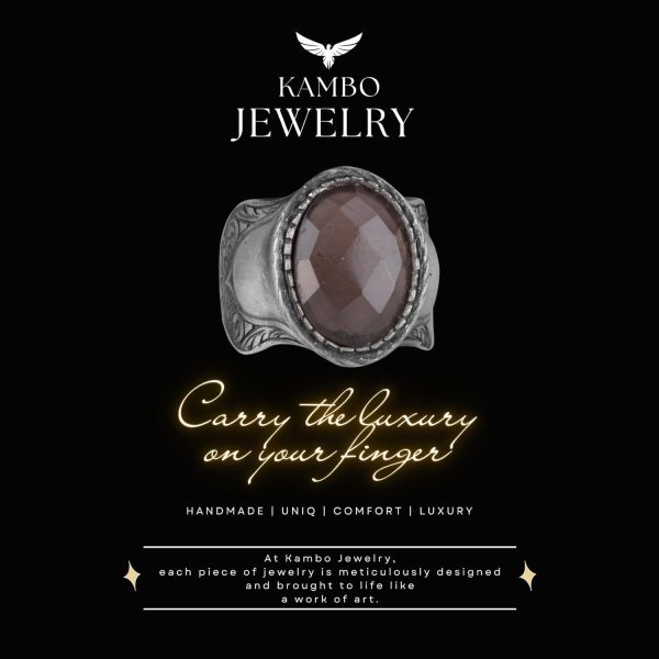 KAMBO Özel Koleksiyonu, 925K Katı Sterlin Gümüş Erkek Yüzüklerimizin eşsiz zarafetini keşfetmeniz için sizi davet ediyor. Koleksiyonumuzdaki her doğal taş, kendine özgü güzelliği ve getirdiği eşsiz enerji ile seçilmiştir. El yapımı yüzüklerimiz, lüks ve kişisel ifadenin özünü yansıtan muhteşem bir işçiliğin kanıtıdır. KAMBO, yüzüğünüzü tam boyutunuza ve tercihinize göre özelleştirme seçeneği sunarak, kaliteli mücevher dünyasına samimi bir yolculuk yapmanızı sağlar. Doğa ve sanatın uyumunu, her biri kalite, memnuniyet ve zamansız zarafet vaadi taşıyan olağanüstü taş yüzüklerimizle deneyimleyin. Yüzük Ağırlığı: 11gr Taş Boyutu: 18-13mm