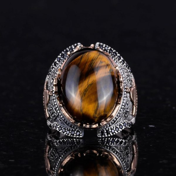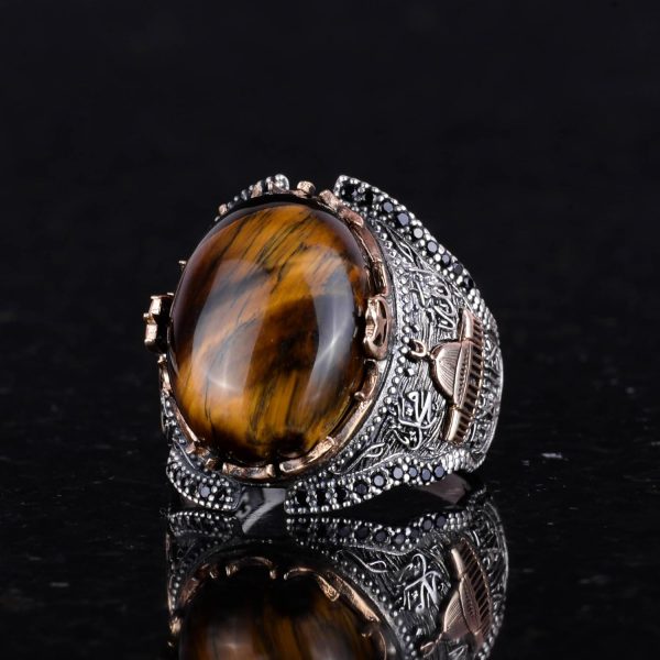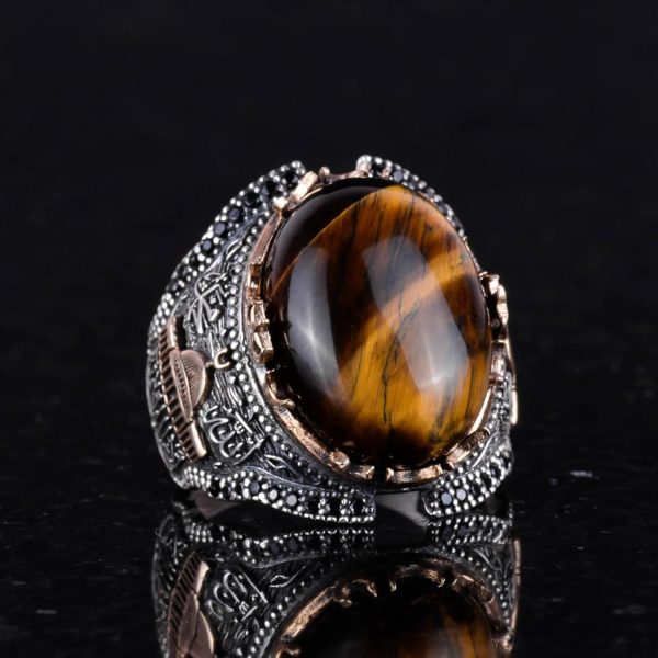 Cesur ve zarif bir tasarım arayan erkekler için mükemmel bir seçim! Kambo Natural Tiger Eye Gemstone Yüzük, eşsiz Tiger Eye taşı ile bezenmiş olup, sahip olduğu güçlü koruyucu nitelikler ile dikkat çekmektedir.