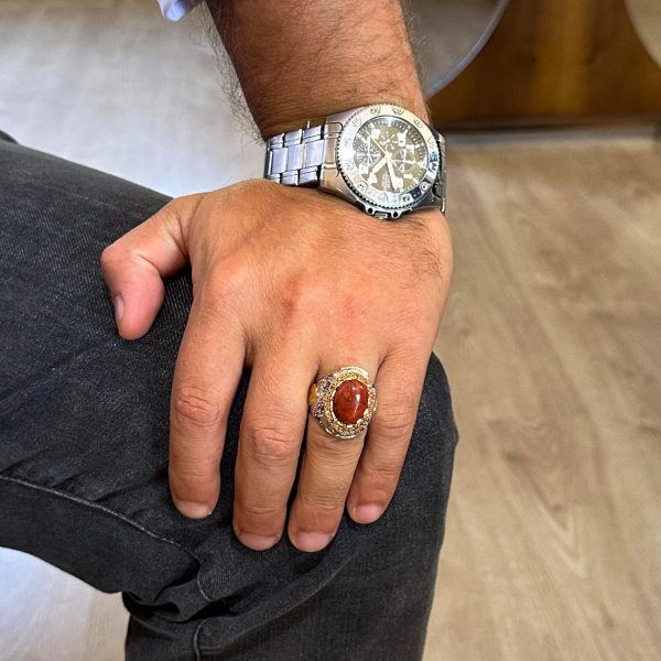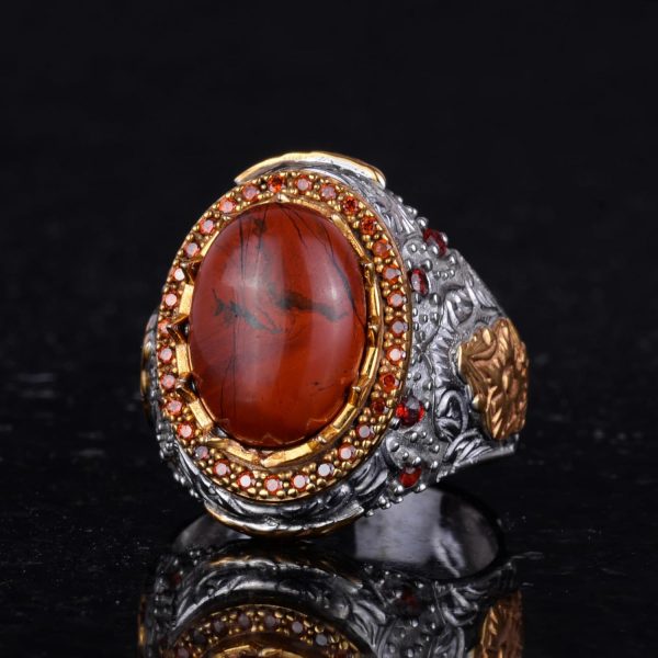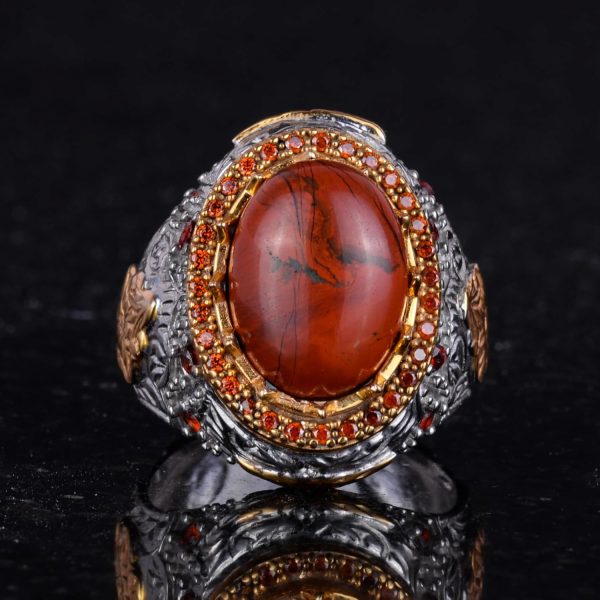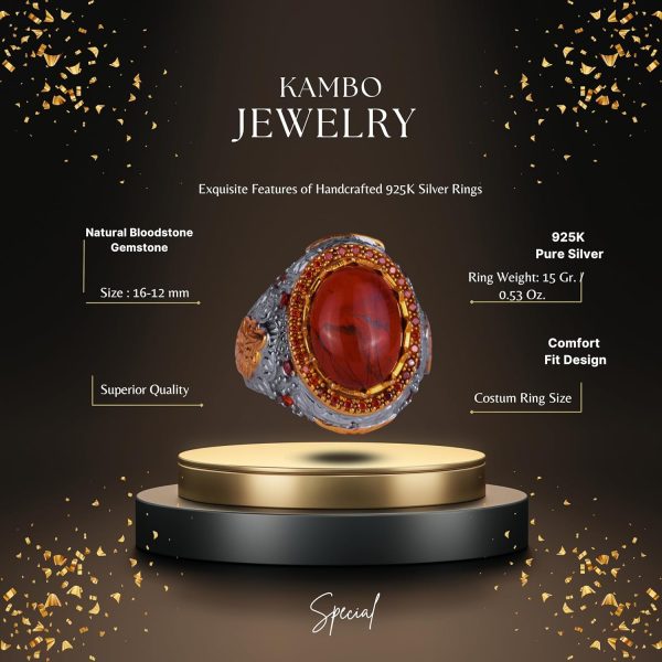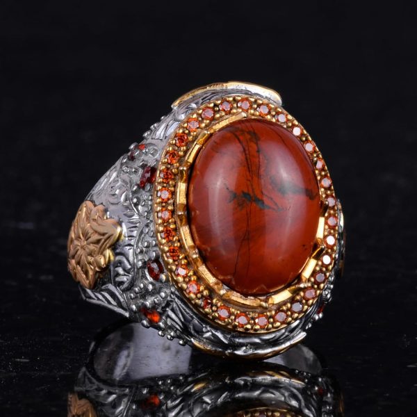 Gerçek Doğal Kan Taşı Taş Yüzük – Eşsiz Sultan Yüzüğü – 925 Ayar Gümüş Erkek Yüzüğü