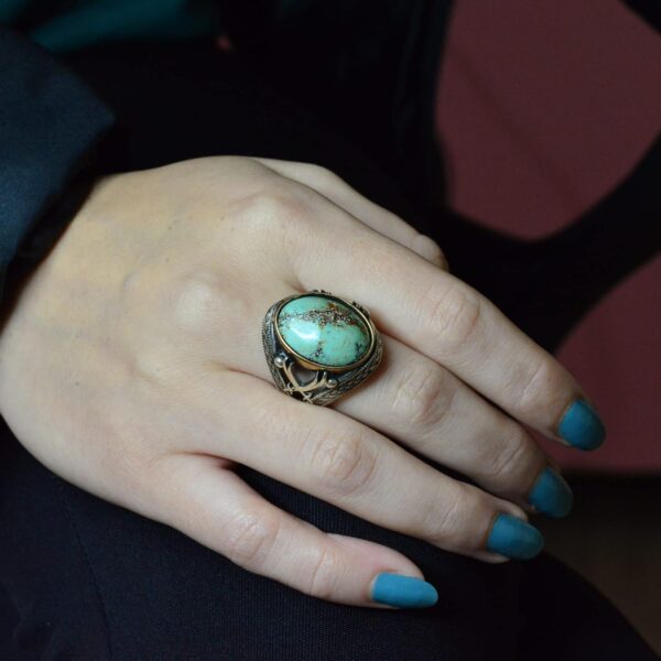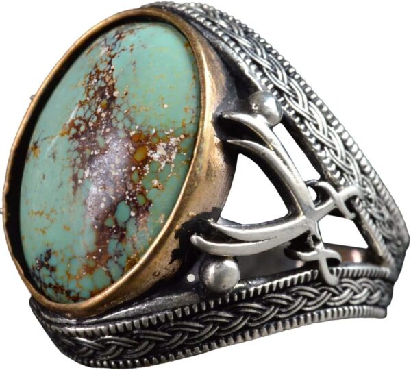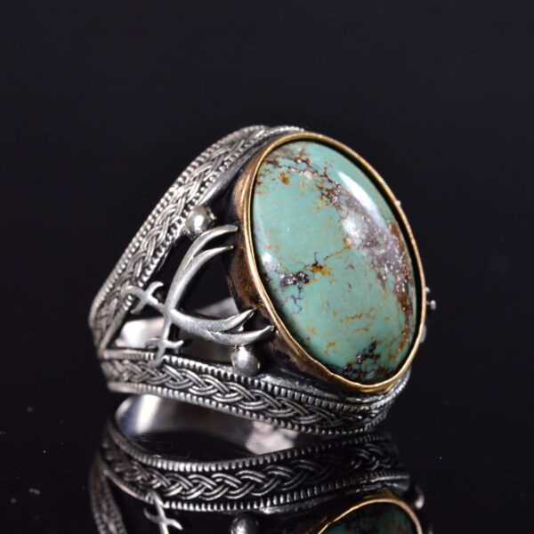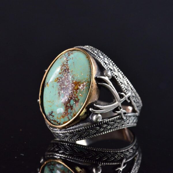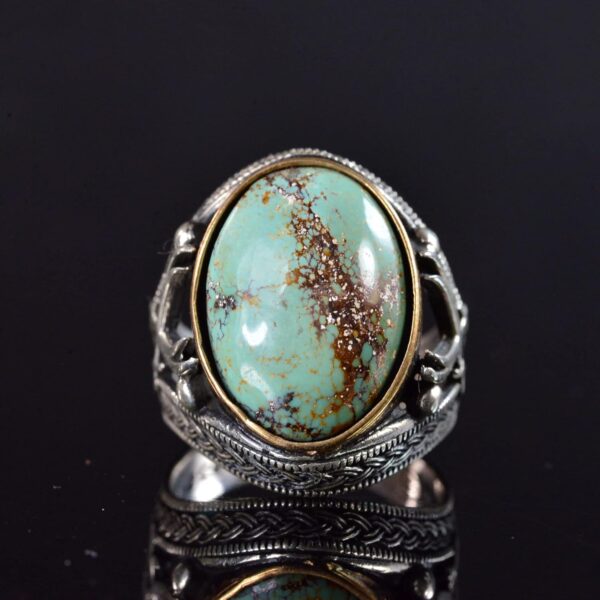 Doğal Turkuaz Taşlı Yüzük – Ayrıntılı Erkek Yüzüğü – 925 Ayar Sterling Gümüş Yüzük