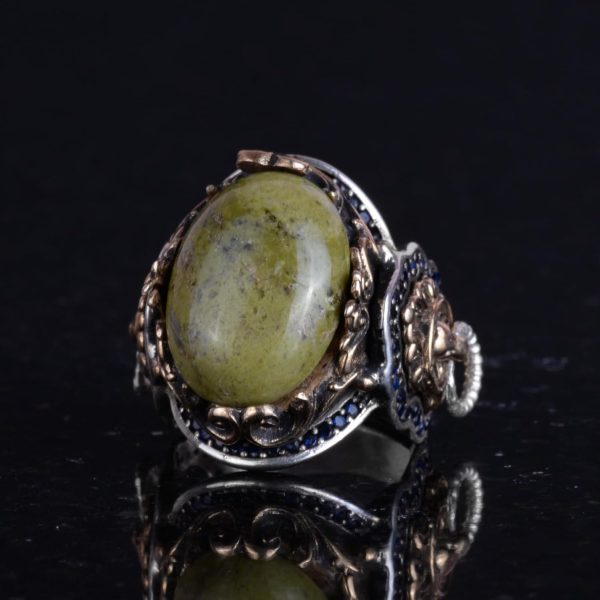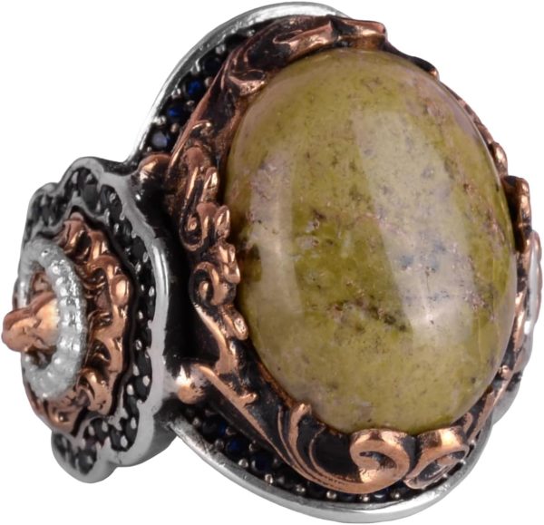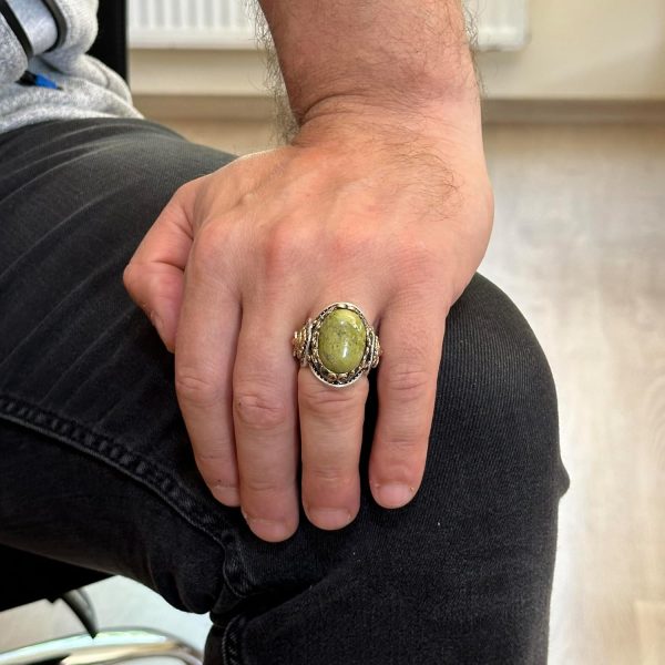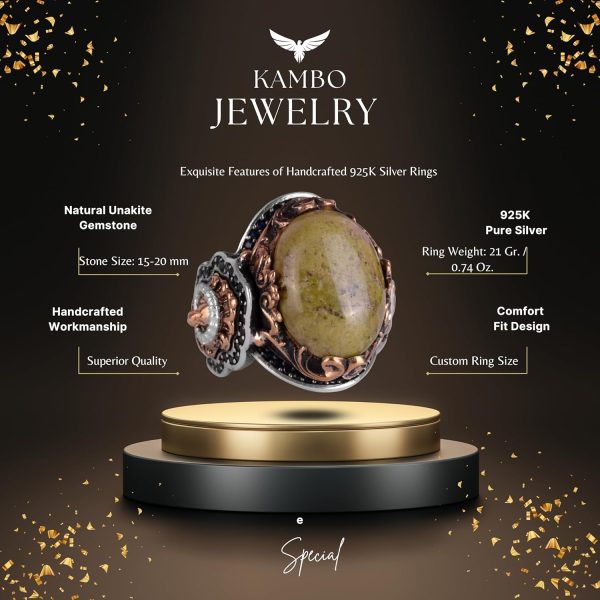 Doğal Unakite Taş Yüzük, Aslan Başı Erkek Yüzüğü – 925K Katı Gümüş Erkek Yüzüğü – Sanatsal Tasarım