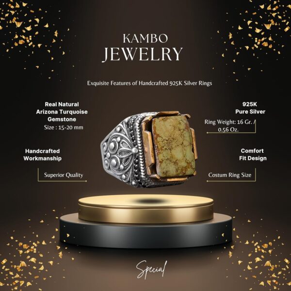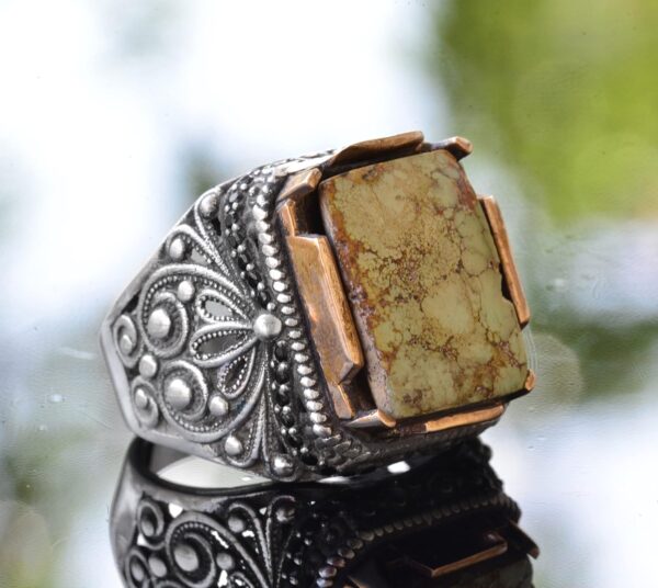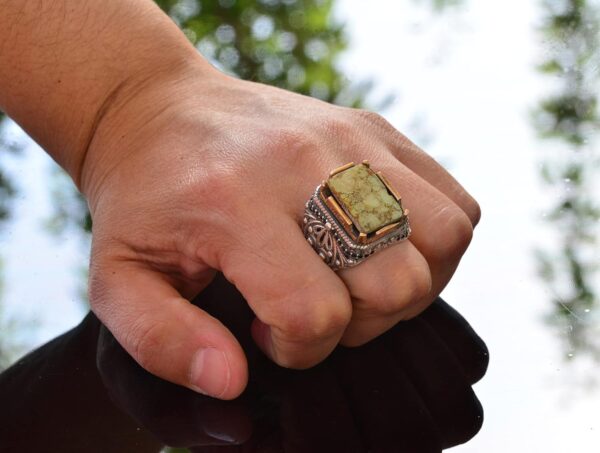 Doğal Yeşil Turkuaz Taş Yüzük Erkekler için, Gümüş Turkuaz Yüzük, 925 Ayar Gümüş Erkek Yüzüğü, Büyük Yüzük