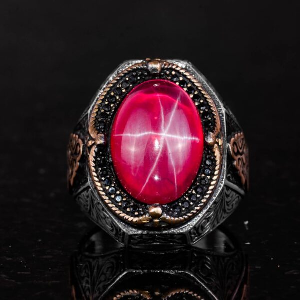 Yıldız yakut taşı, tutku ve korumayı sembolize etmesiyle bilinir. Bu yüzüğü takmak, sadece estetik bir tercih değil; aynı zamanda içsel güç ve sevginin bir ifadesidir. Bu, yüzüğü sadece güzel bir aksesuar değil, aynı zamanda derin bir anlam taşıyan anlamlı bir mücevher parçası haline getirir.