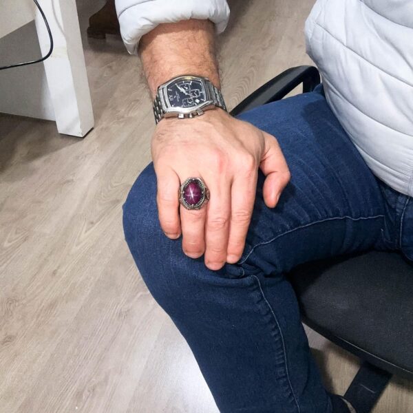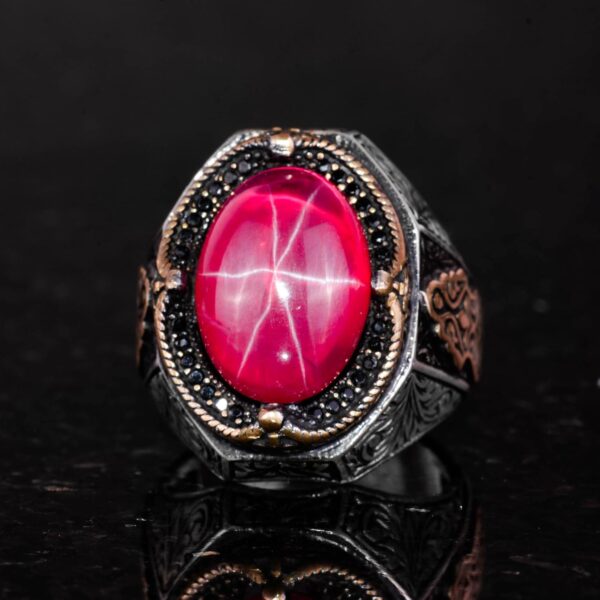 Doğal Yıldız Yakutu Taşlı Yüzük – 925 Ayar Saf Gümüş Yüzük Erkekler İçin