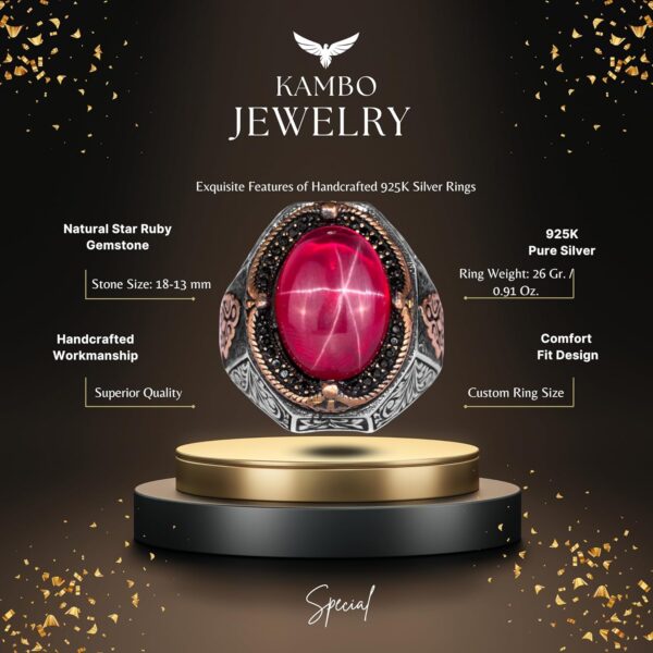 KAMBO Doğal Yıldız Yakut Taş Yüzük – 925 Ayar Saf Gümüş Yüzük, Eşsiz Yüzük
