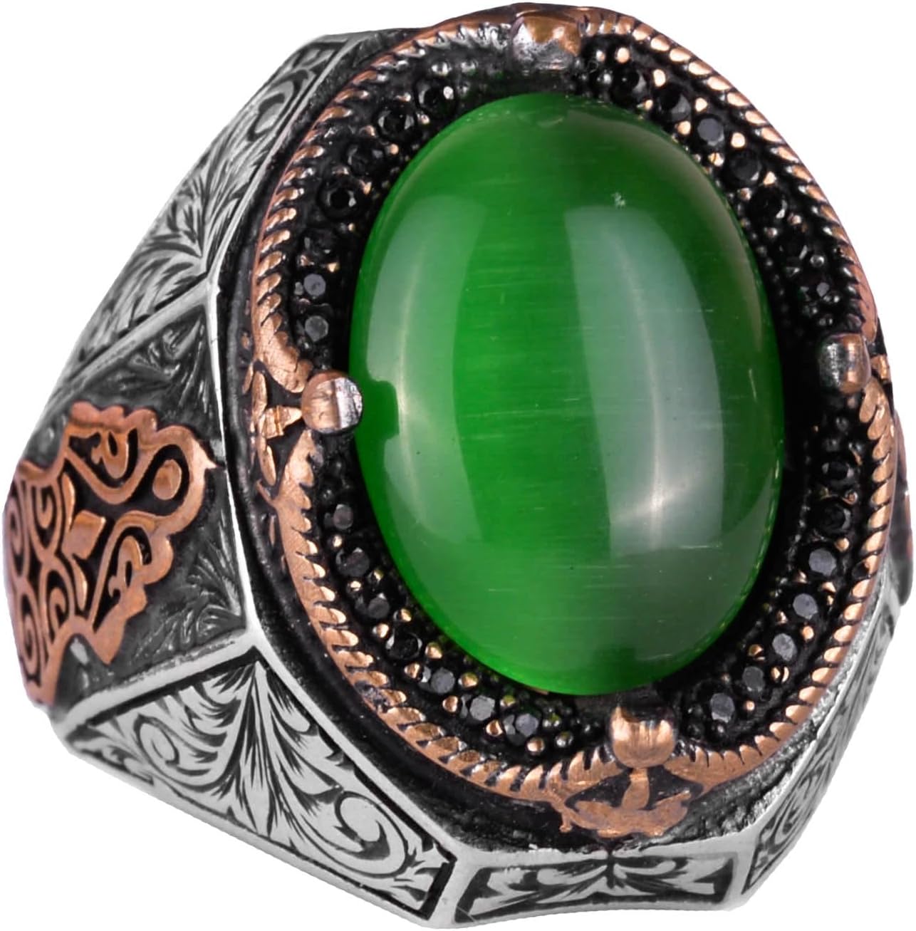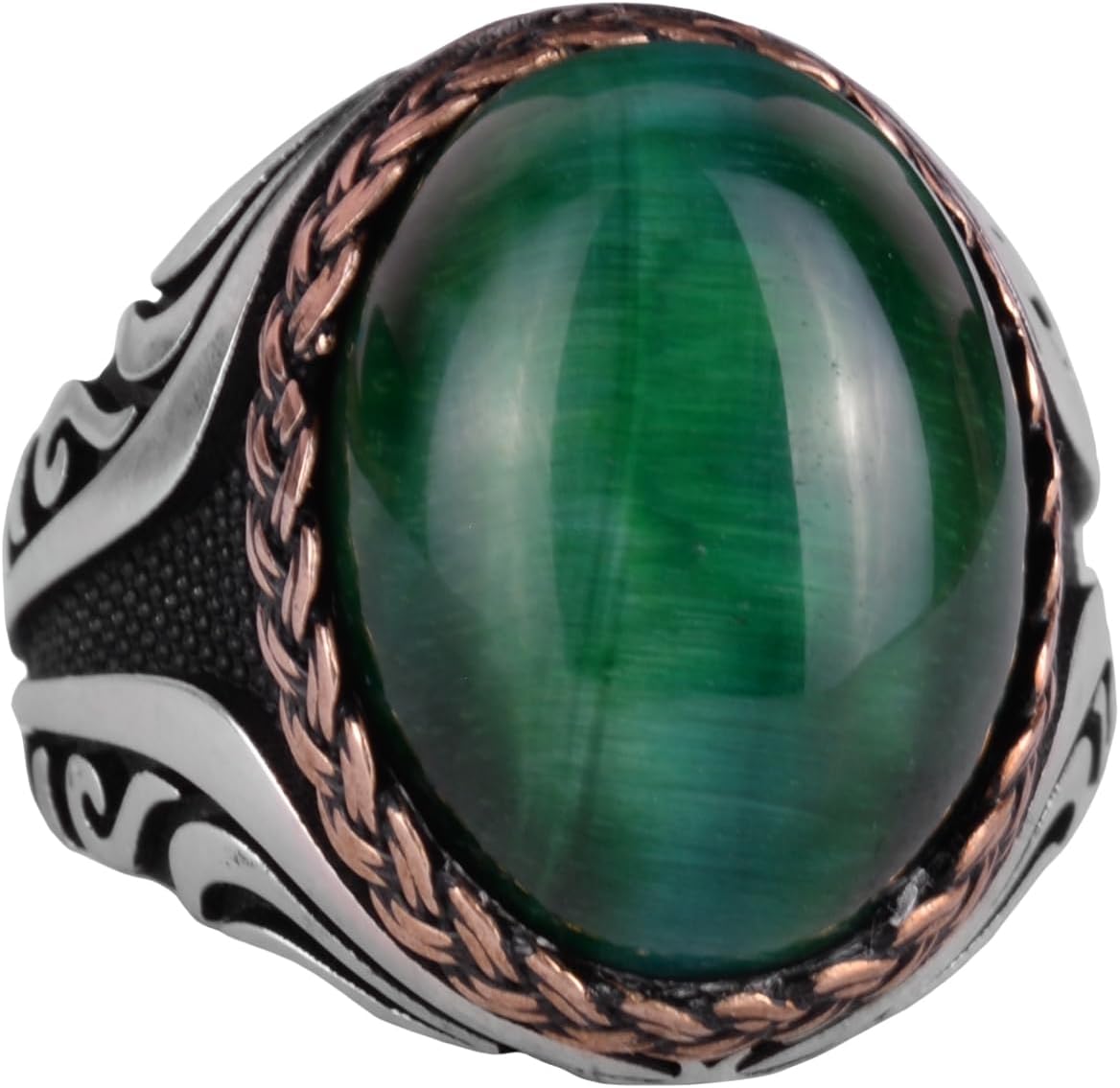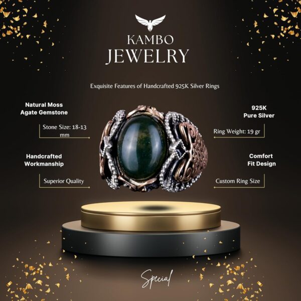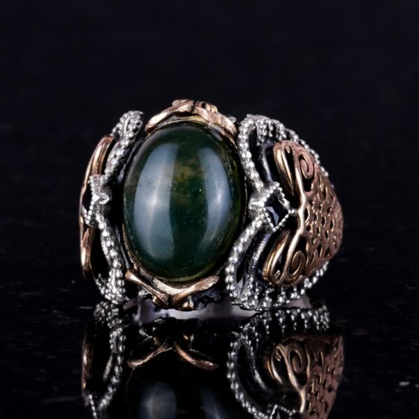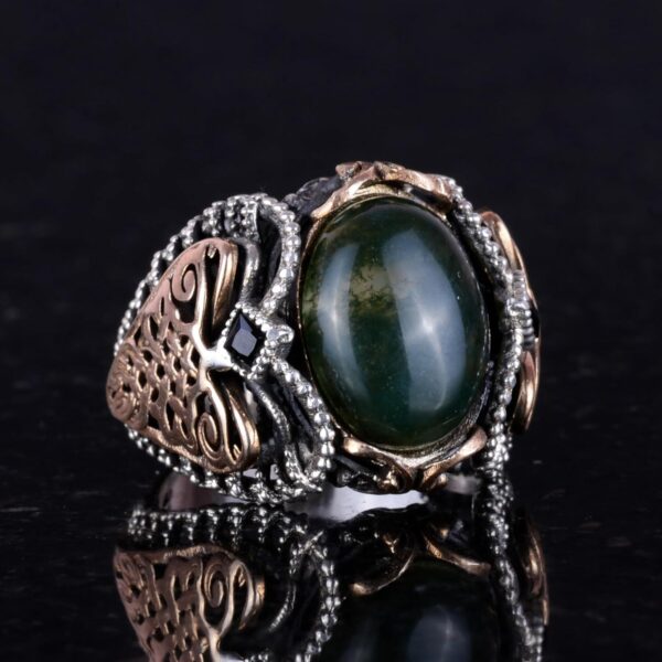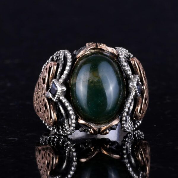 Doğal Yosun Akik Taşı, 925 Ayar Katı Gümüş Erkek Yüzük, El Yapımı Zarafet