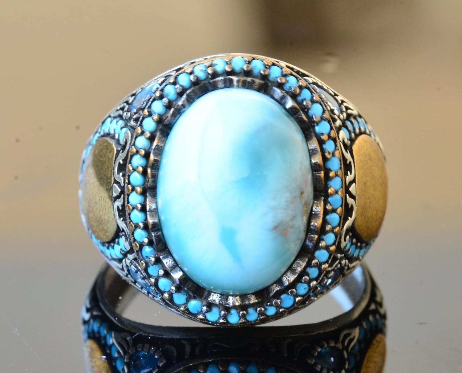 “Gerçek Doğal Larimar Taşı Kral Yüzük – El Yapımı Gümüş Takı Erkekler için” sepetinize eklendi.