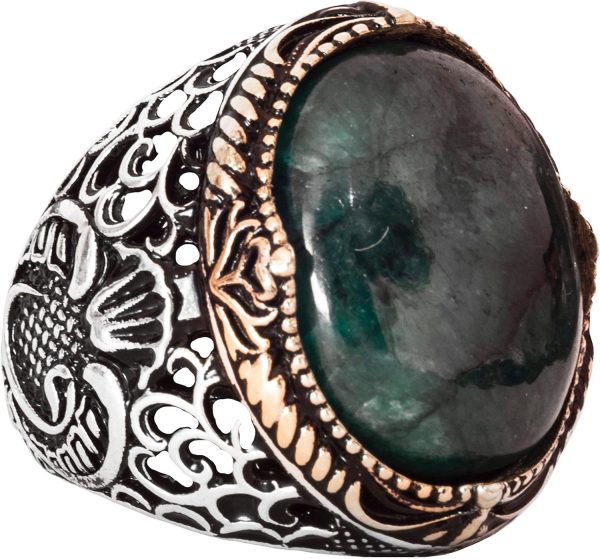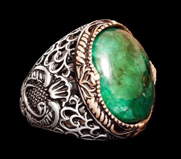 Doğal Zümrüt Taşlı Yüzük – Erkek Yüzüğü – 925 Ayar Saf Gümüş Farklı Tasarım