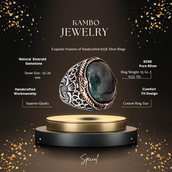 KAMBO Doğal Zümrüt Taşlı Yüzük ile stilinizi geliştirin ve güç ve refahın zamansız sembollerini kucaklayın.