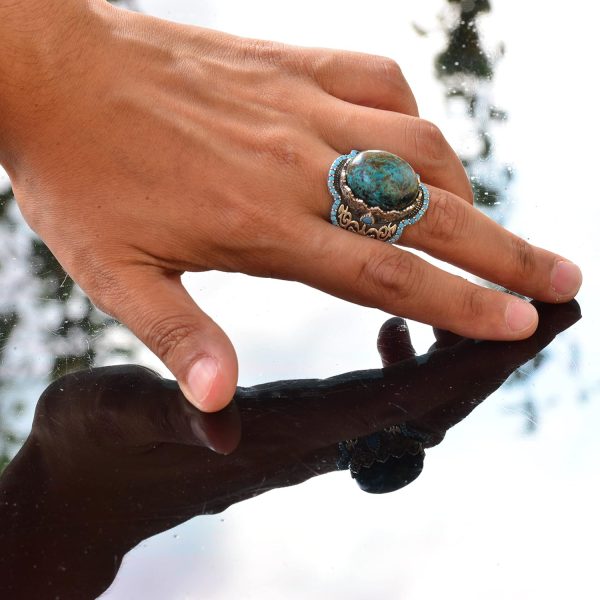 925 Ayar Gümüş ile El Yapımı Chrysocolla Taş Yüzük – Kültürel Tasarım