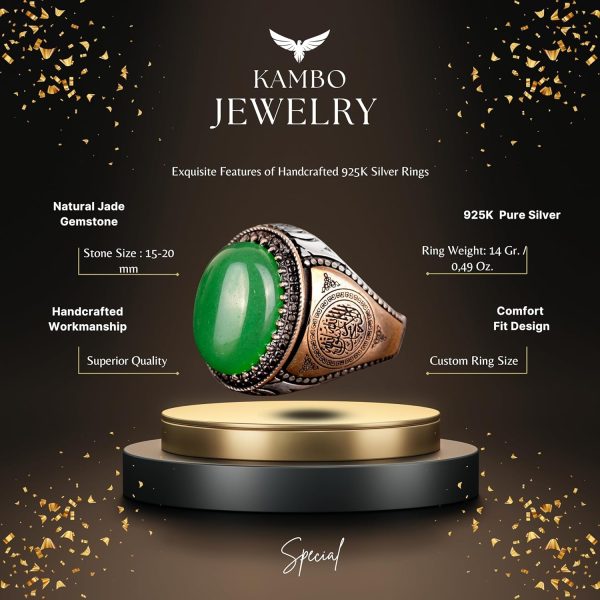 - ZARİF TASARIM: Canlı doğal yeşil jade taşı ile birlikte karmaşık İslami desenler ve detaylar içerir.