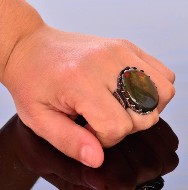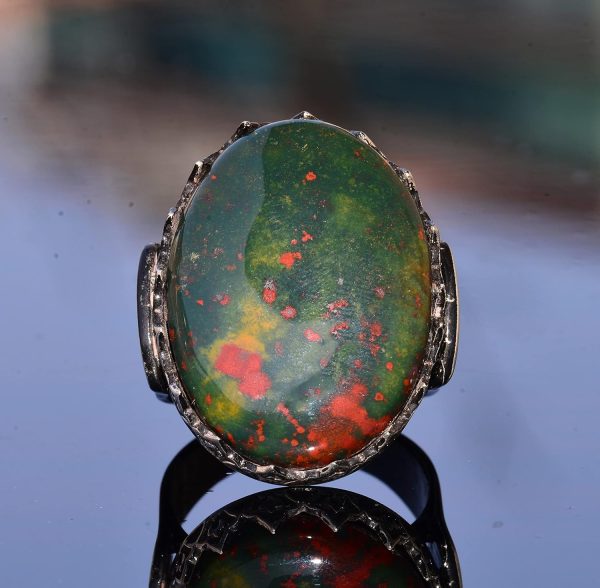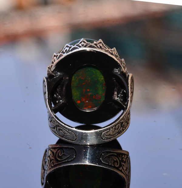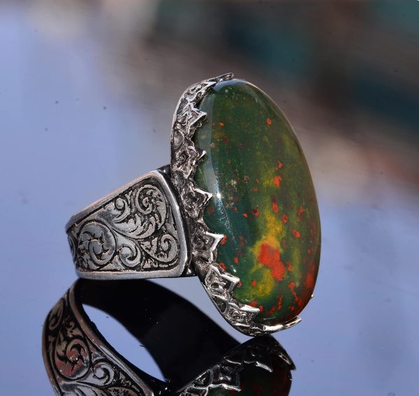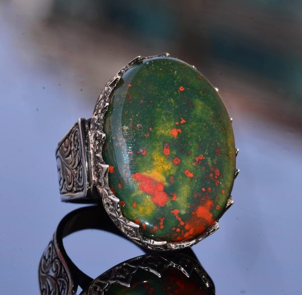 Gerçek Kan Taşı Değerli Taşı: Gerçek bir Kan Taşı ile süslenmiş olan bu yüzük, zarafet ve koruma sunar. Kan Taşı, iyileştirici ve koruyucu özellikleri ile bilinir ve her kıyafete lüks bir dokunuş katar.