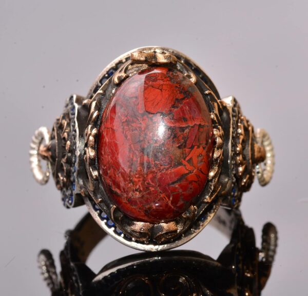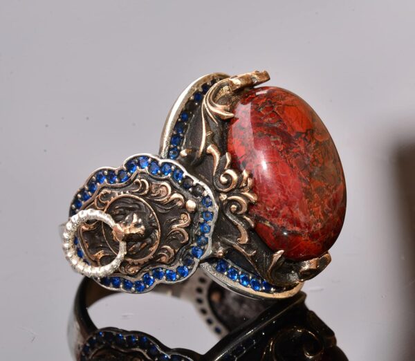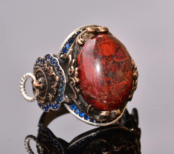 Gerçek Kan Taşı: Şahane bir Kan Taşı ile süslenmiş bu yüzük, zarafet ve koruma sunar. Kan Taşı, şifalı ve koruyucu özellikleri ile bilinir, ruhsal iyi oluş ve dengeyi teşvik eder.