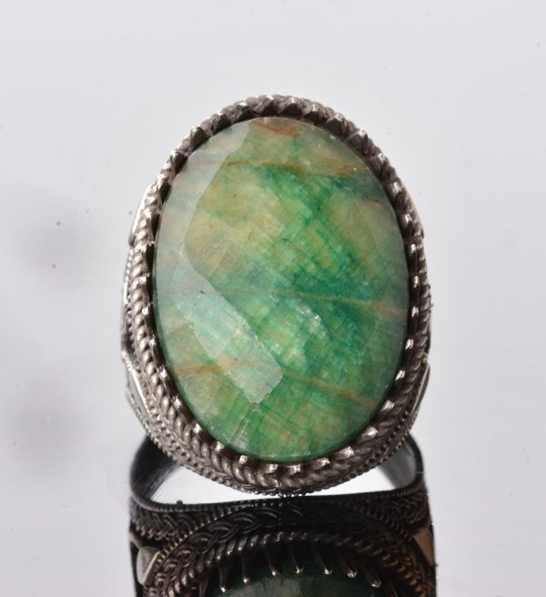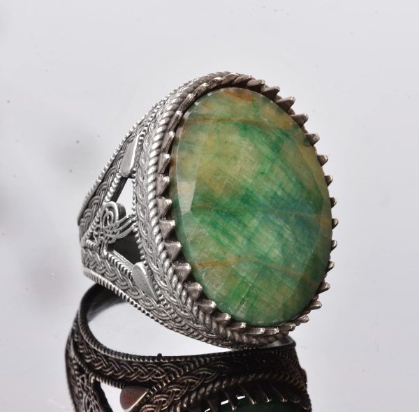 Gerçek Zümrüt Taşının Faydaları: Gerçek bir Zümrüt taşıyla süslenmiş olan bu yüzük, zarafet ve yenilenme hissi yayar. Zümrüt, şifa ve yenileyici özellikleriyle bilinir, ruhsal sağlık ve dengeyi teşvik eder.
