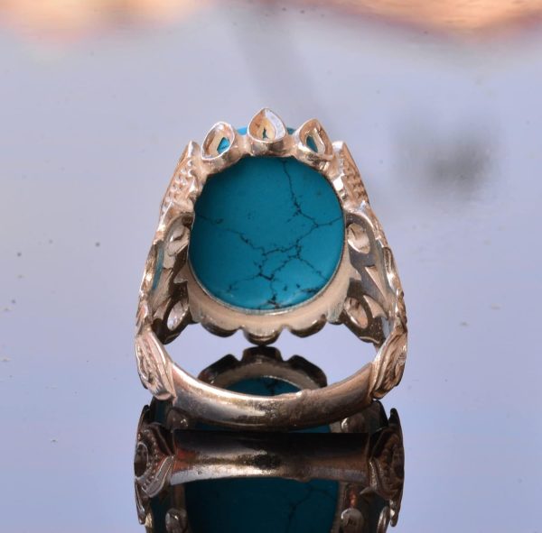Bu etkileyici yüzük, dayanıklılığı ve parlatılmış, lüks bir parlaklık sağlamak için yüksek kaliteli 925 ayar gümüşten üretilmiştir. Yüzük, koruma ve içgörü için güçlü bir sembol olan ikonik Nazar Boncuğu Piramidi’ni içermektedir ve sıkça Illuminati sembolizmi ile ilişkilendirilmektedir. Canlı yaratılmış turkuaz taşı, bu yüzüğe dikkat çekici bir kontrast ekleyerek her takı koleksiyonunda öne çıkan bir parça haline getirir.