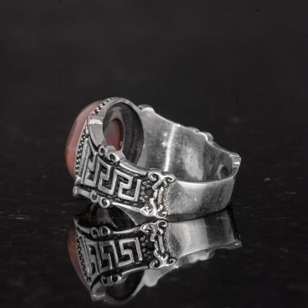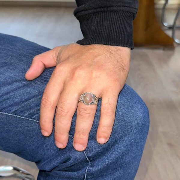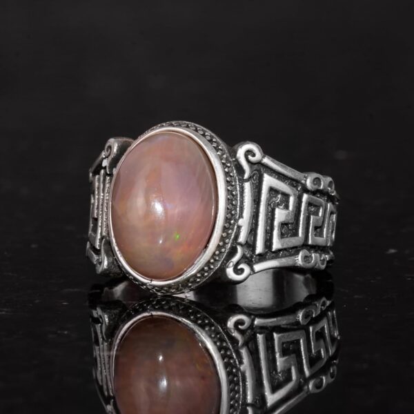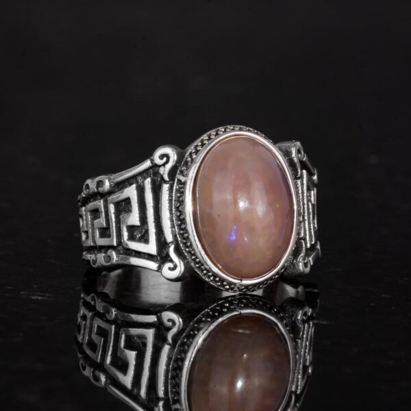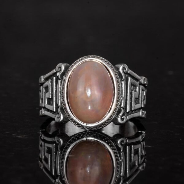 El Yapımı 925 Ayar Gümüş Erkek Yüzük ile Doğal Etiyopya Opal Taşı – Labirent Tasarımı (Stil-1)