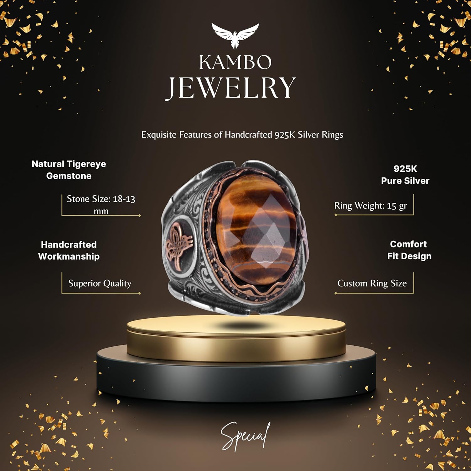 Bizans döneminin zengin tarihinden ilham alan bu yüzük, geçmişe bir bakış sunar ve modern erkeğe yeniden yorumlanmıştır.