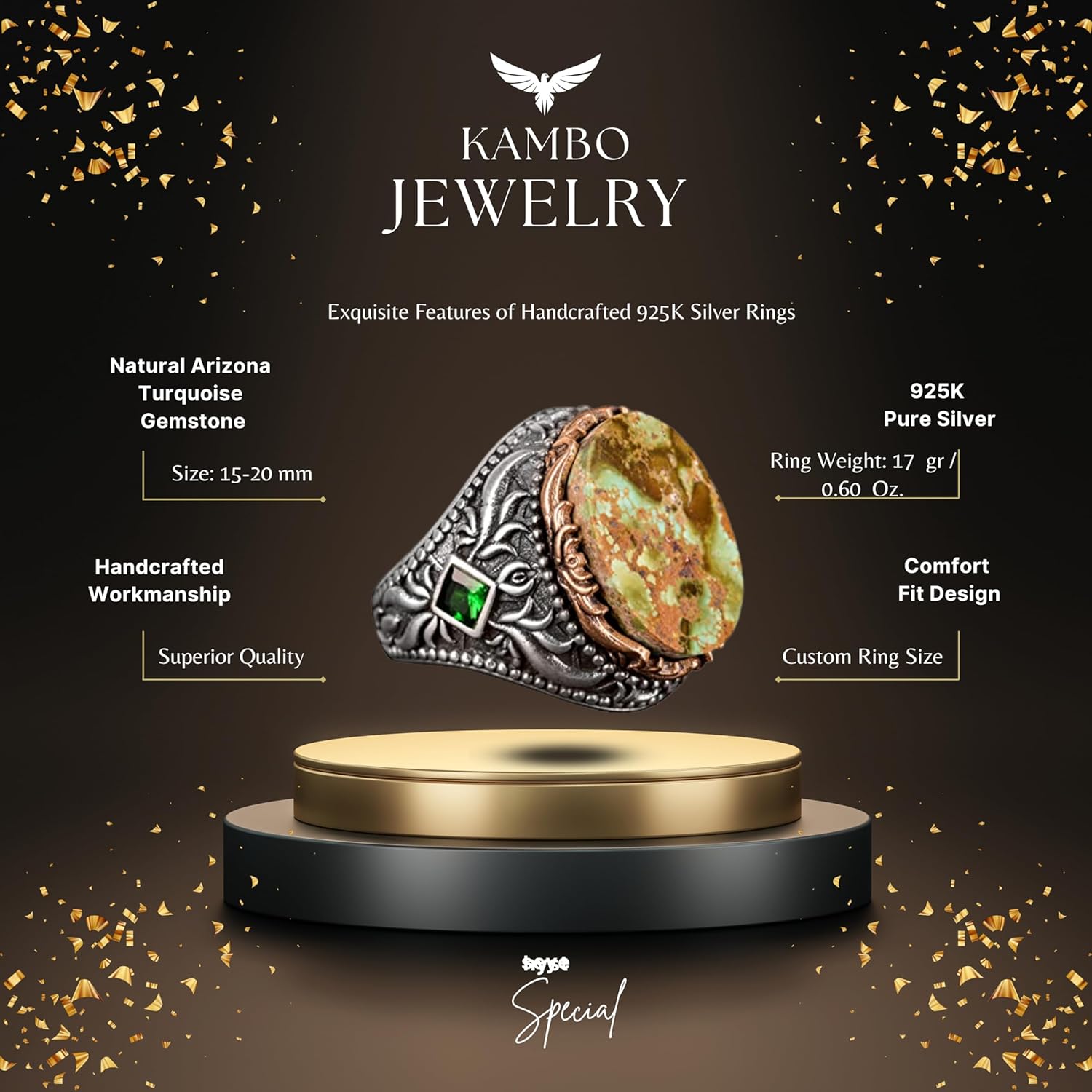 Okçuluk sanatını, Bizans sanatının zarafetini veya el yapımı mücevherlerin eşsizliğini sevenler için ideal olan bu yüzük, düşünceli ve unutulmaz bir hediye yapar.