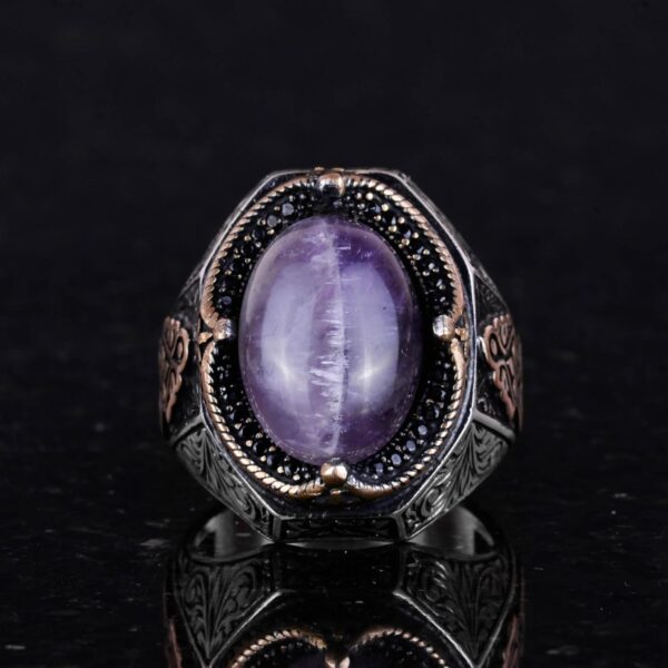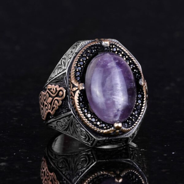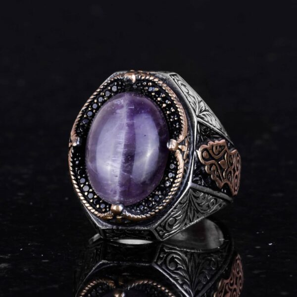 El Yapımı Ametist Taş Yüzük – Spiritüel 925K Katı Sterlin Gümüş Erkek Yüzük, Sezgi ve Koruma Tasarımı