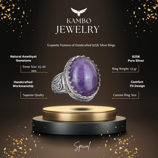El Yapımı Doğal Ametist Taşlı Yüzük – 925K Katı Gümüş Erkek Yüzüğü – Sezgi ve Koruma Tasarımı