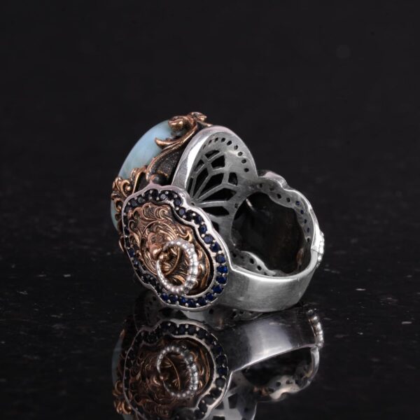 El Yapımı Aslan Sembolü Yüzük, Larimar Taşı Yüzük – Sakin 925K Katı Gümüş Erkek Yüzüğü